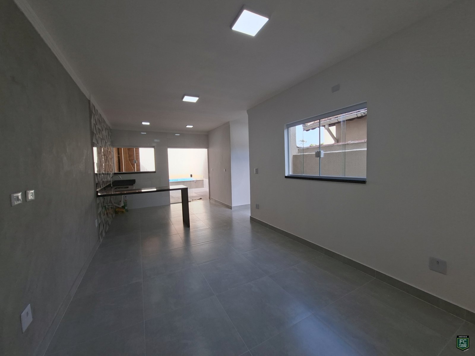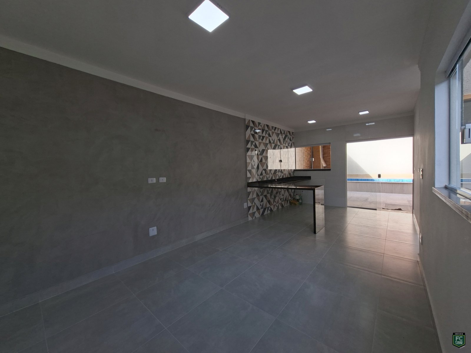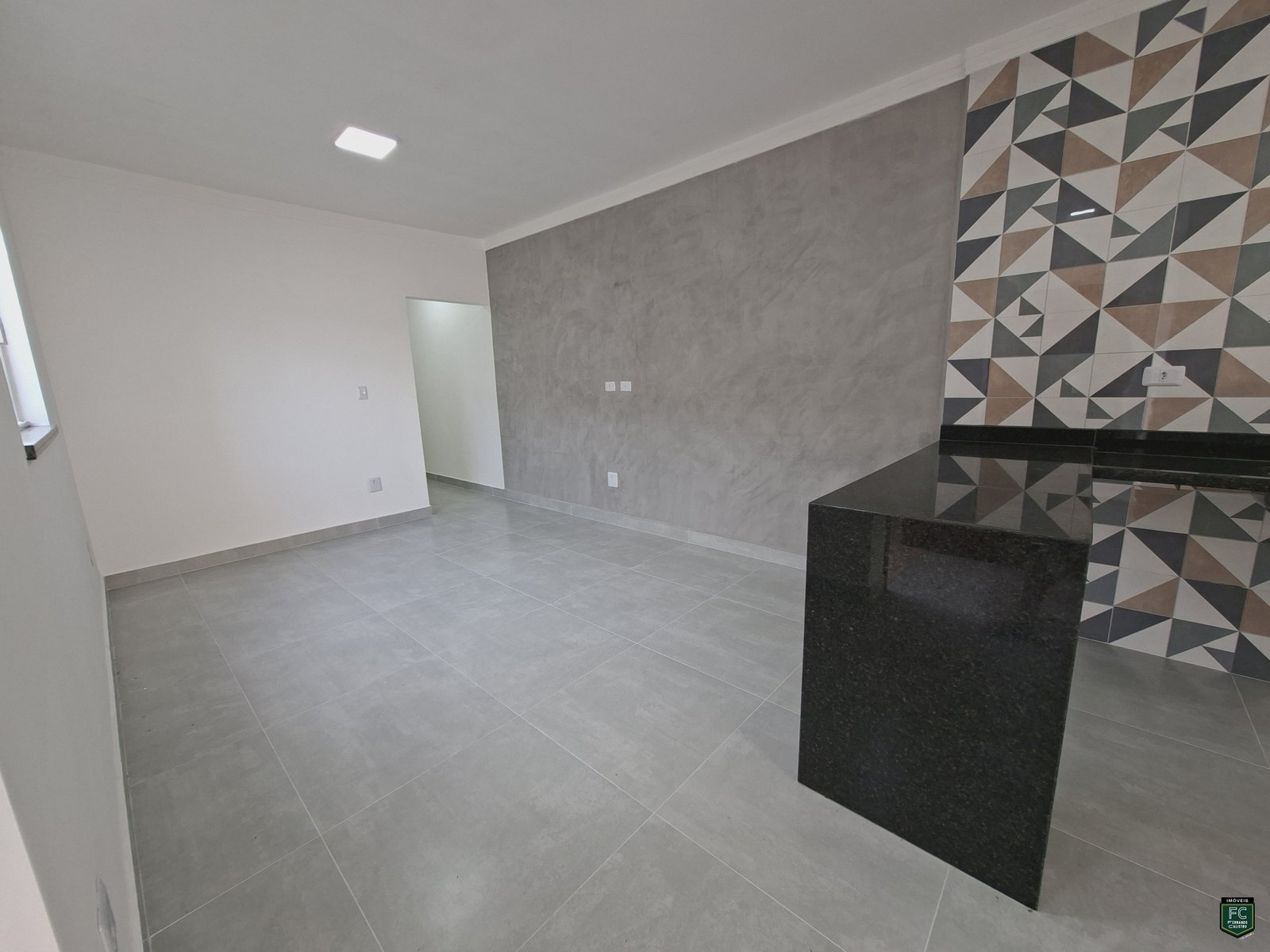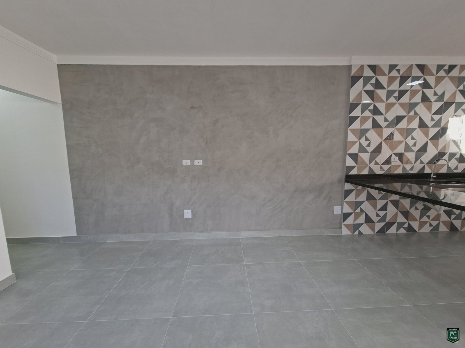 • Sala integrada ampla com parede em cimento queimado