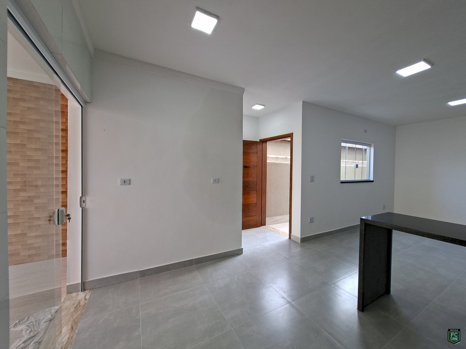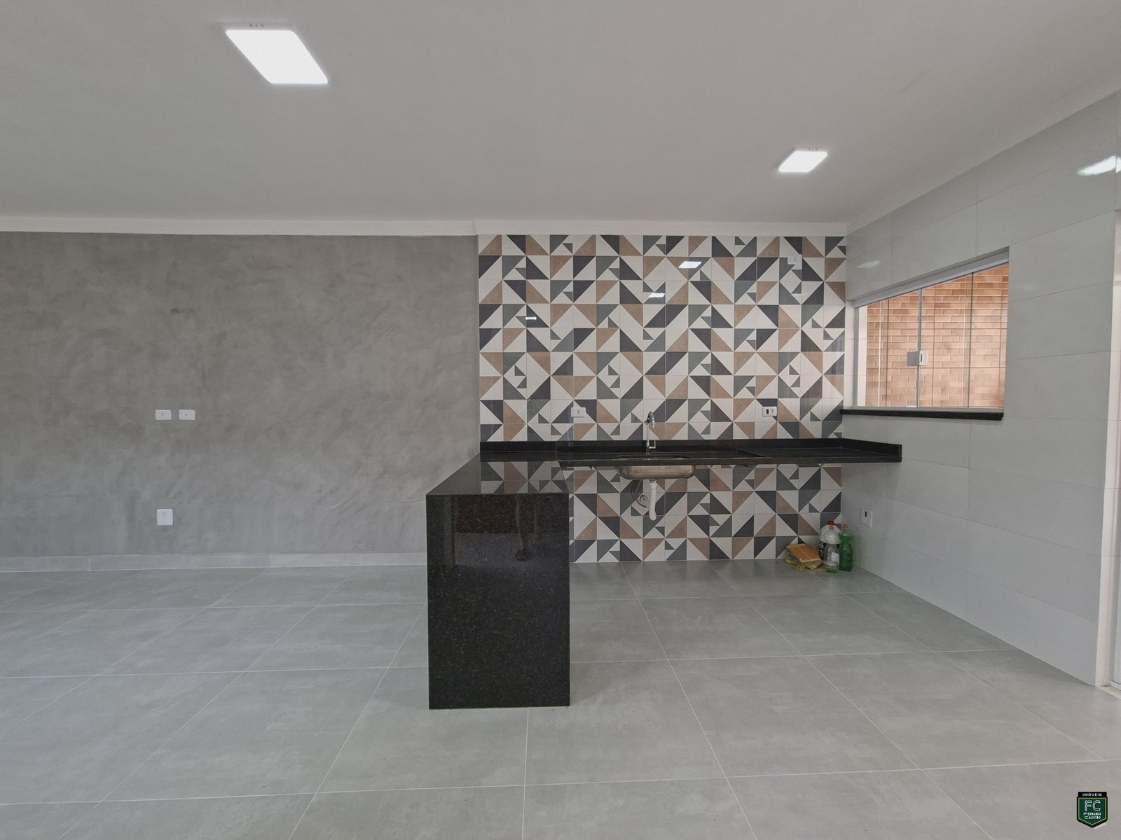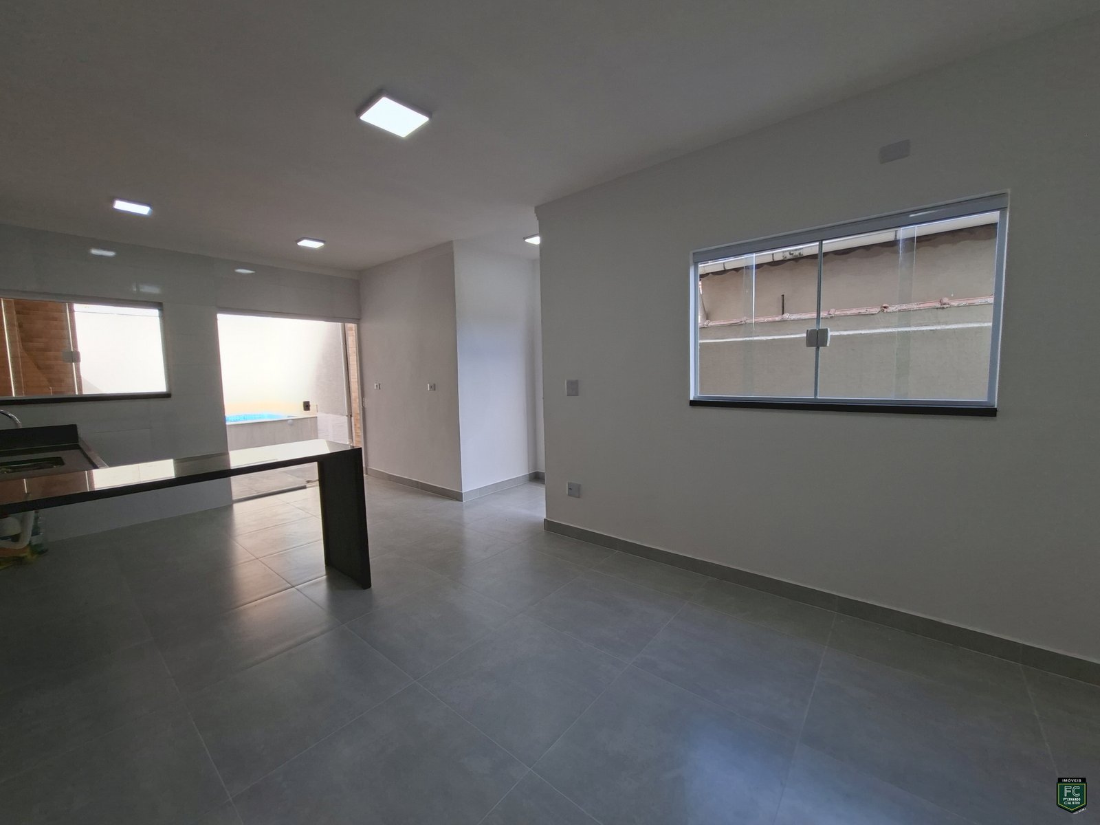 • Sala integrada ampla com parede em cimento queimado