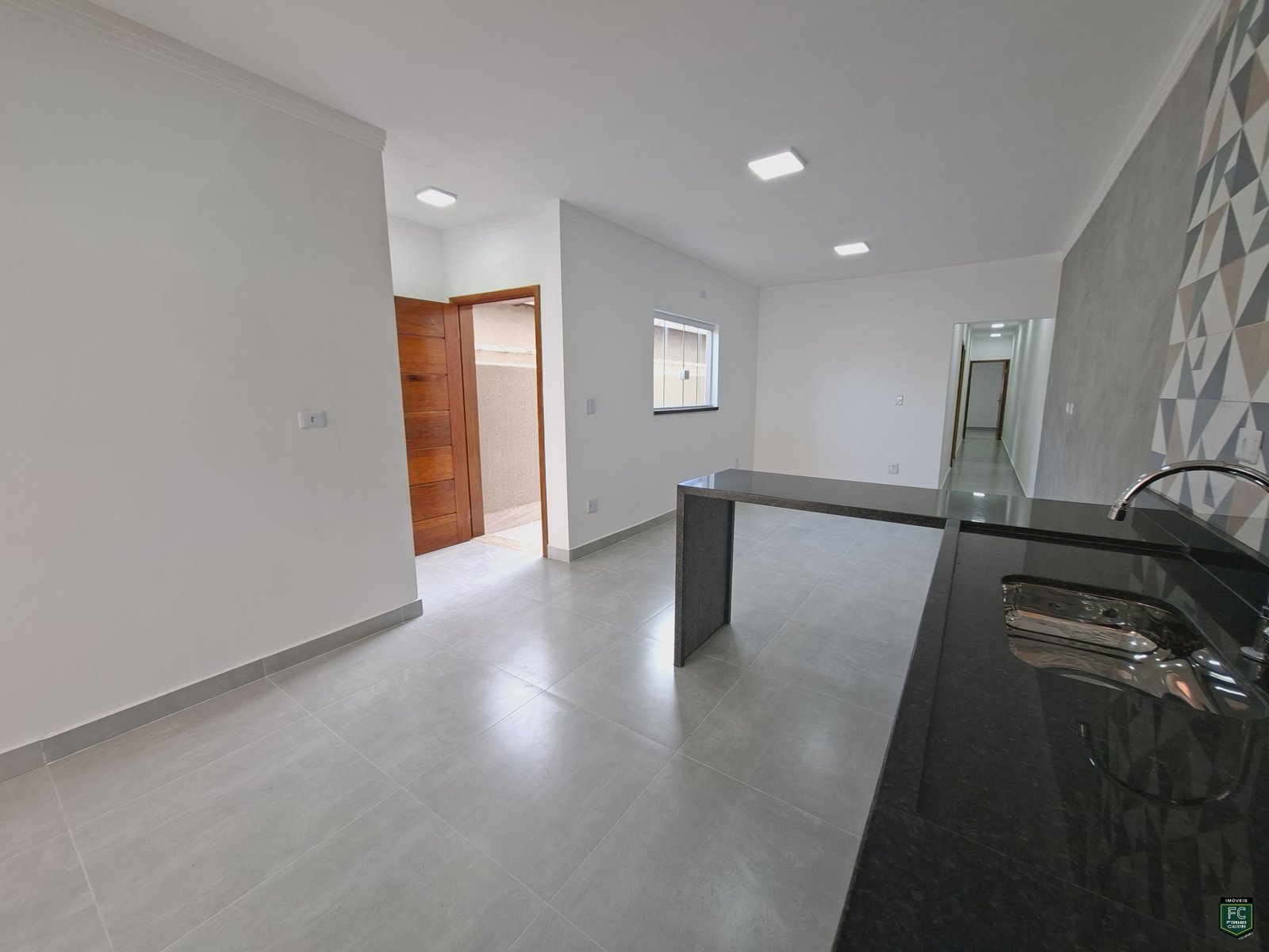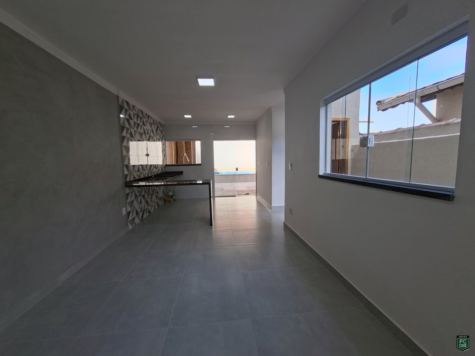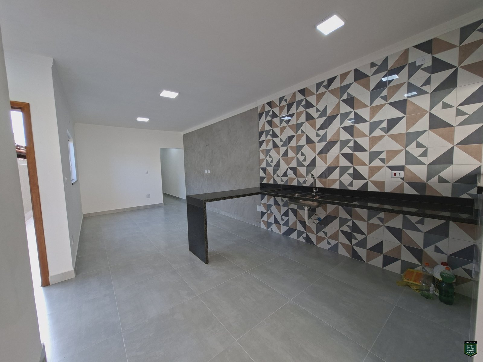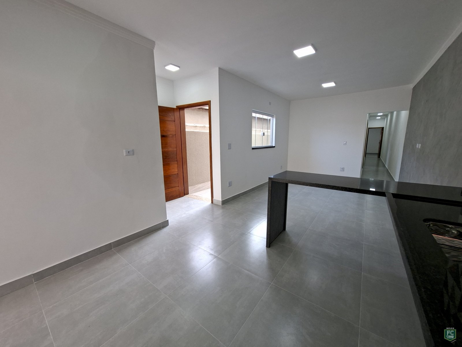 • Sala integrada ampla com parede em cimento queimado