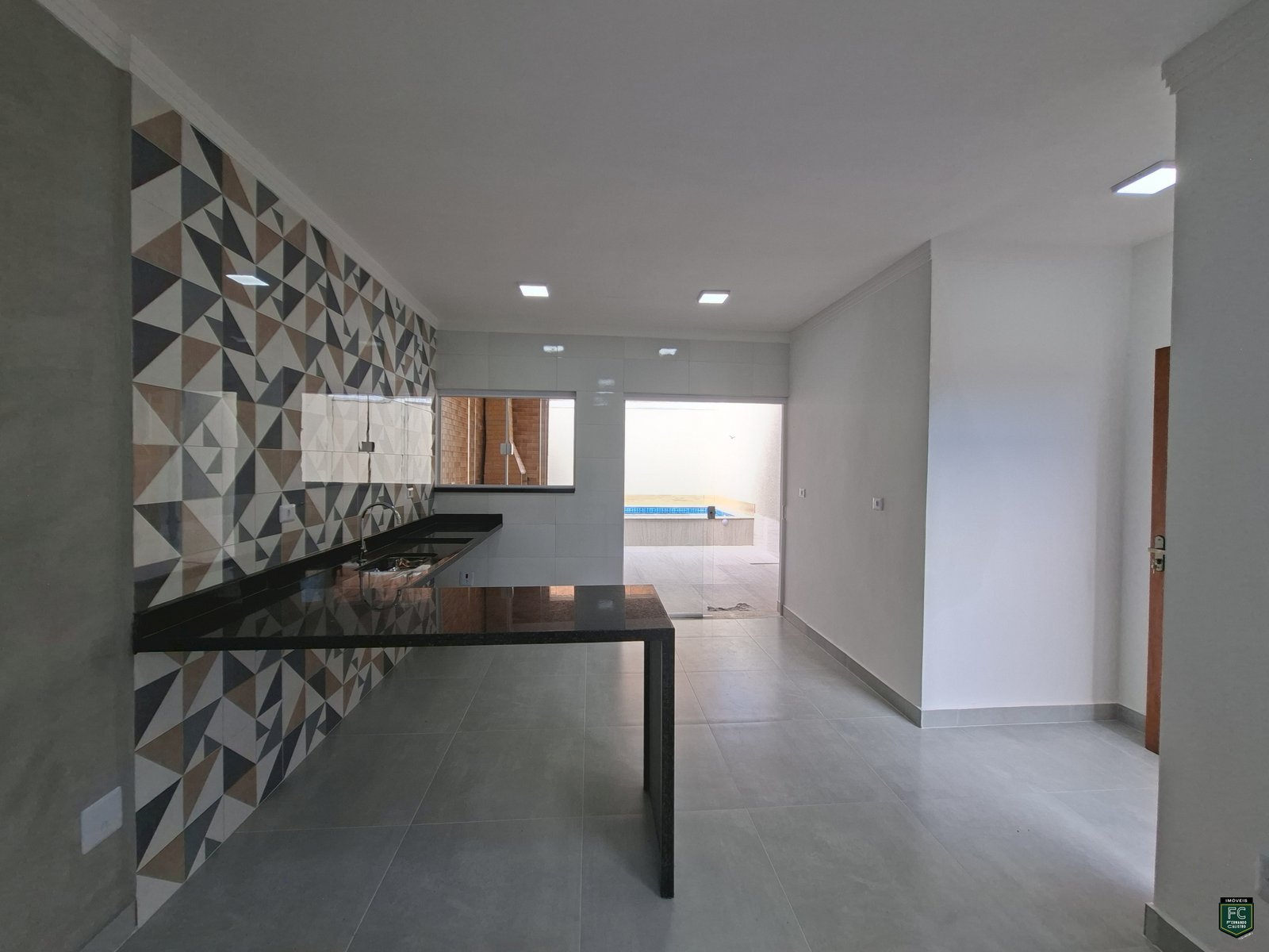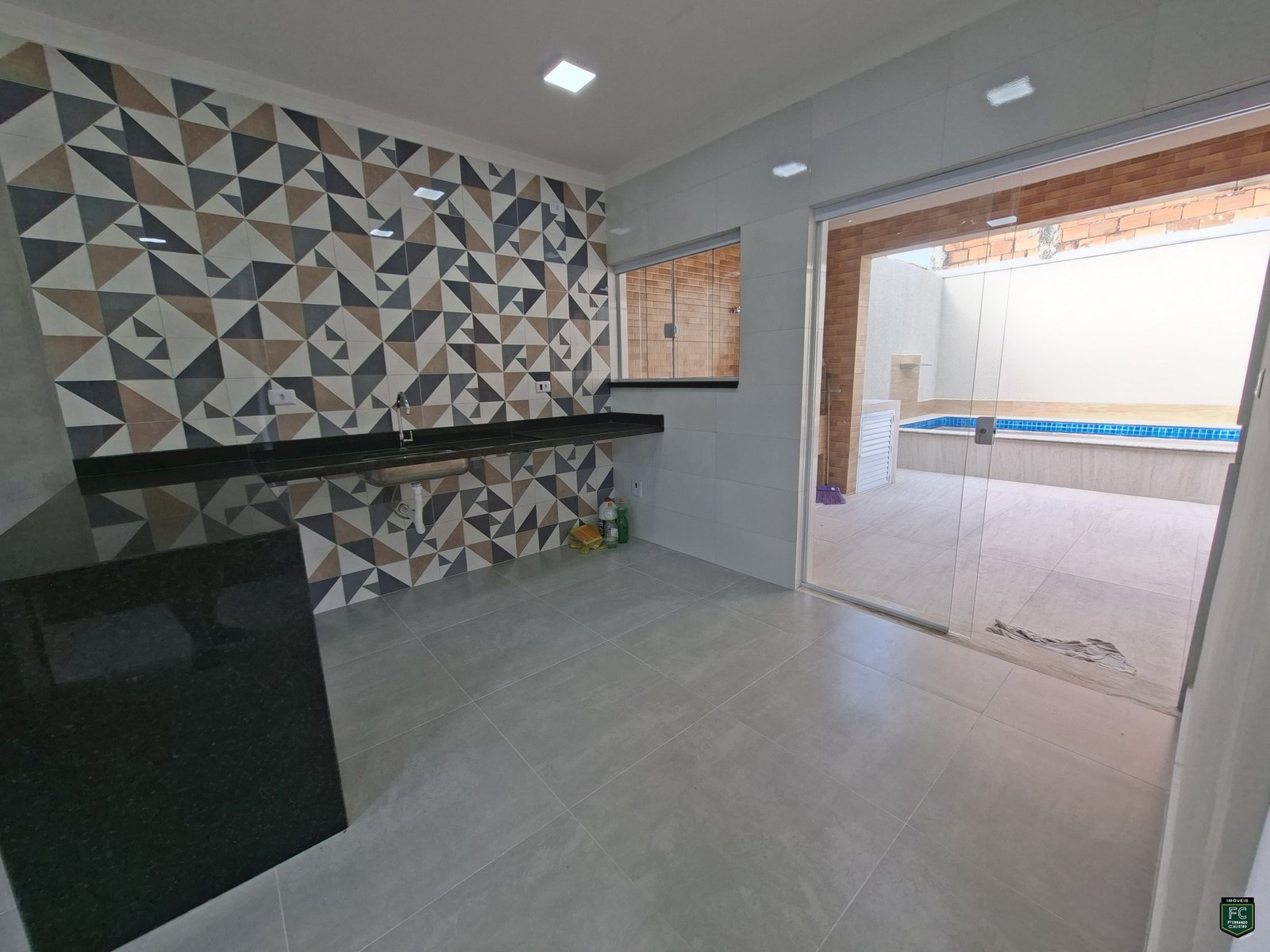✔️ Bancada em granito no mesmo padrão da cozinha