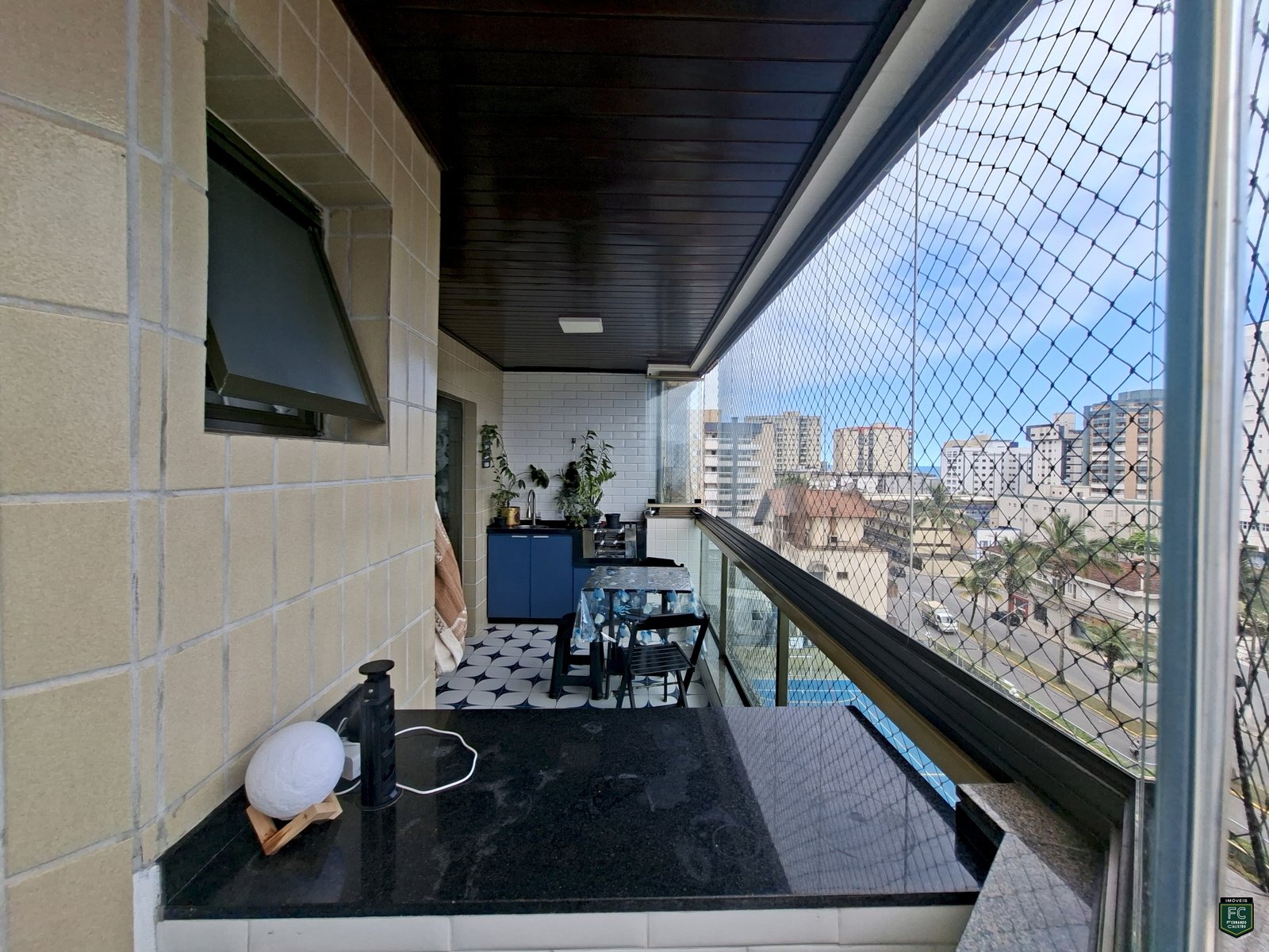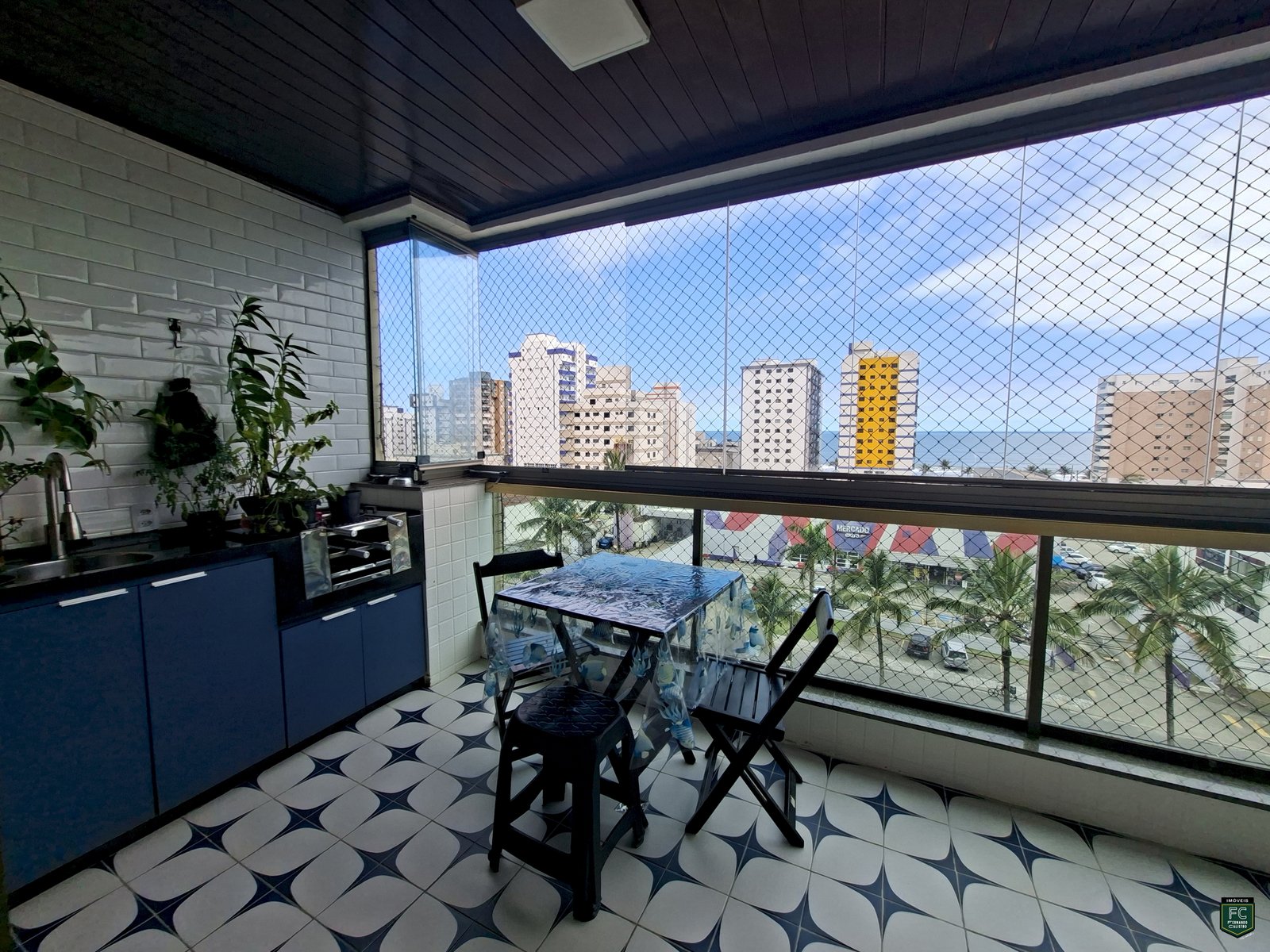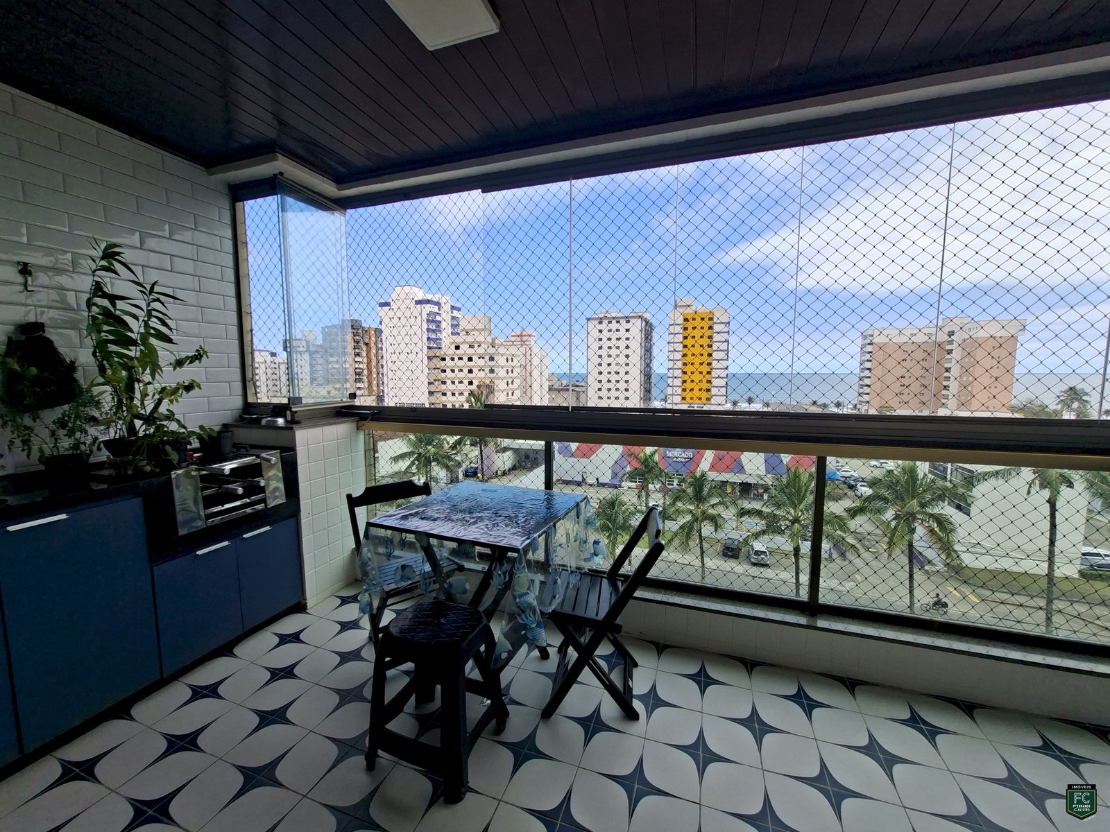 ✅ Varanda gourmet envidraçada com vista frontal para o mar