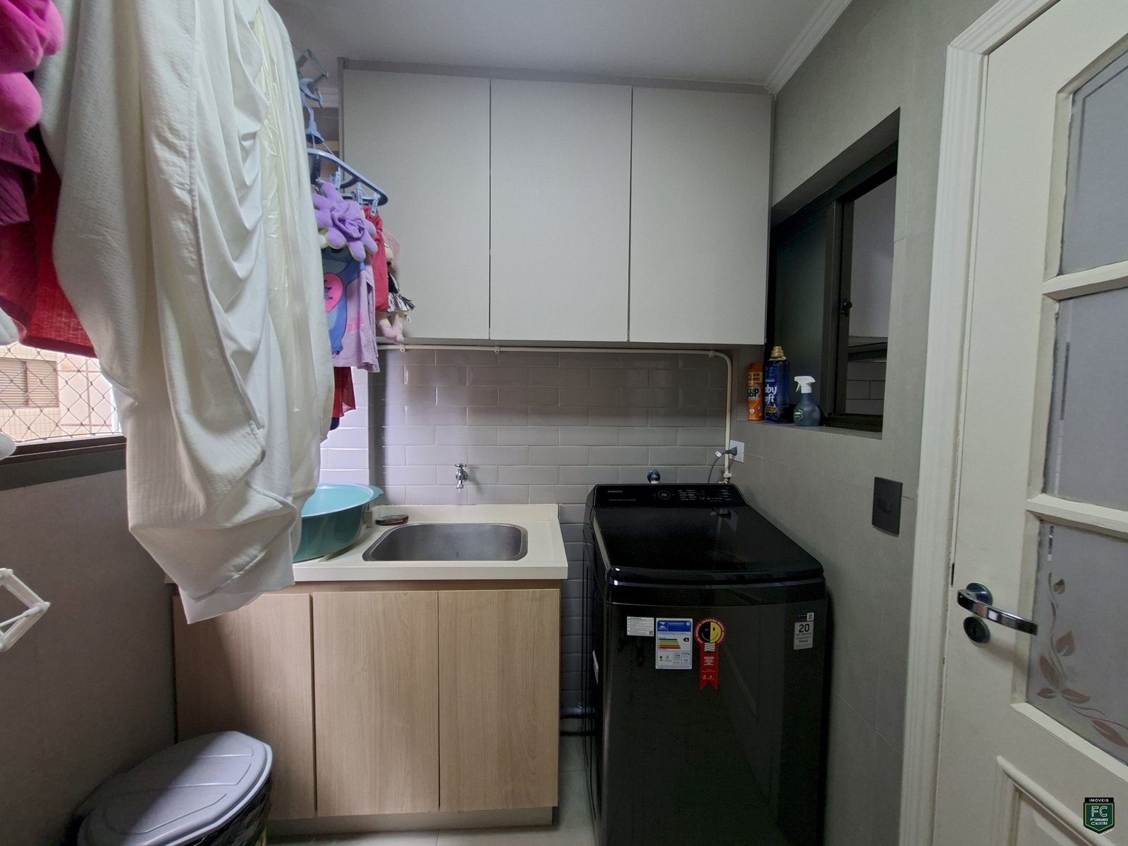 ✅ Área de serviço ampla, iluminada e ventilada, com armários sob medida