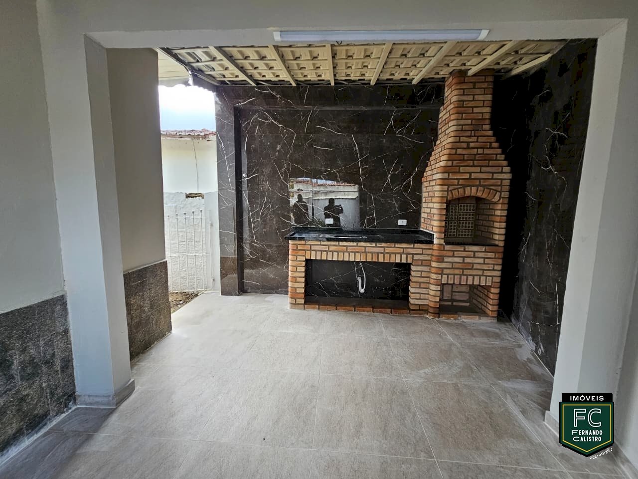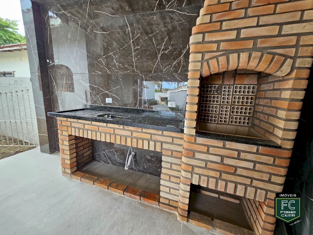 ✅ Área gourmet totalmente revestida, com churrasqueira em tijolinhos e pia em granito