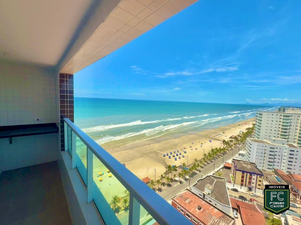 Empreendimento em esquina frente ao mar, com vista privilegiada para o oceano a partir da maioria das unidades, em bairro residencial com excelente padrão, em um trecho tranquilo e valorizado da orla de Mongaguá/SP.