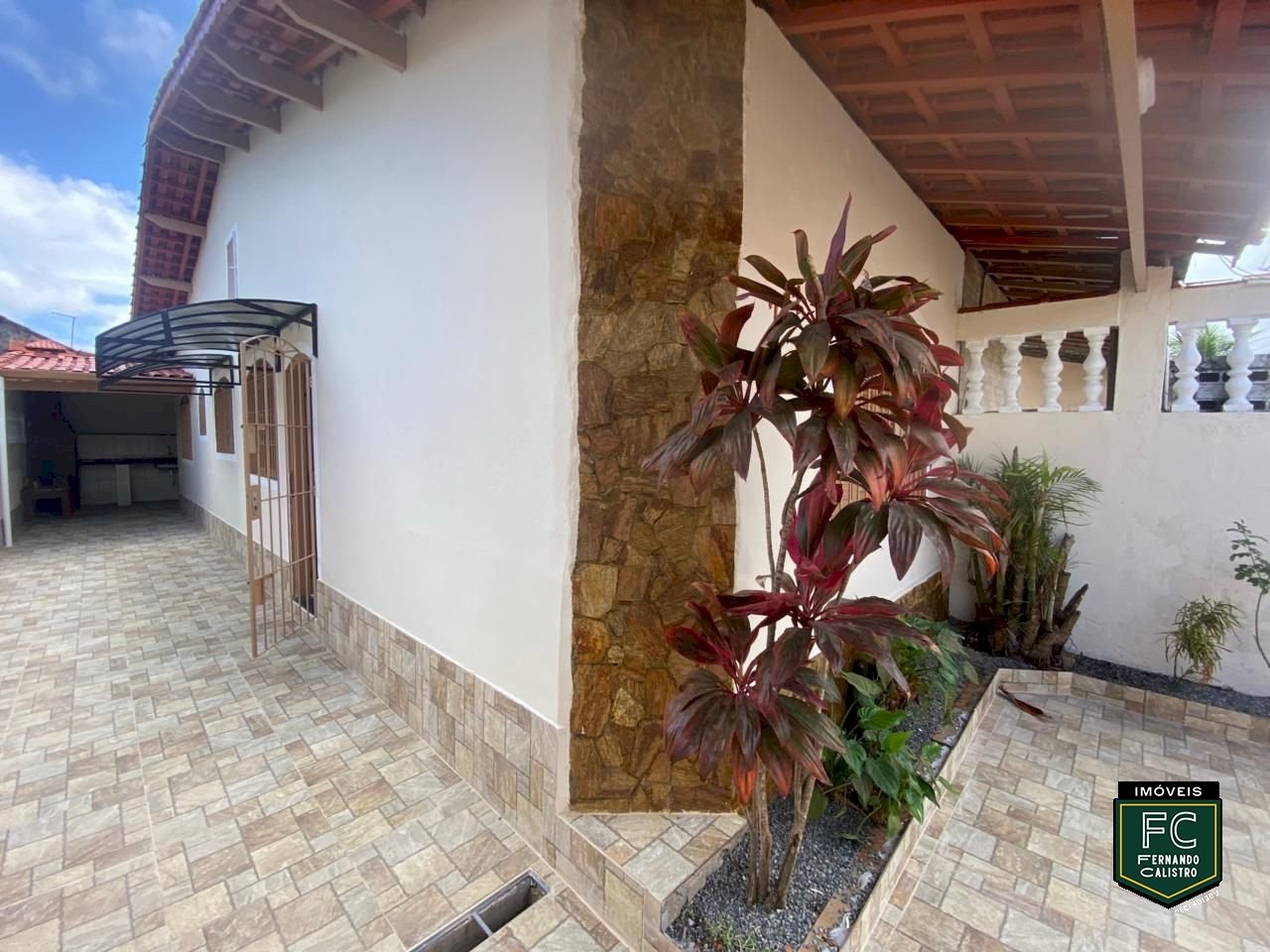Casa térrea com 2 dormitórios, quintal amplo e área gourmet completa, localizada a aproximadamente 700 metros da praia.