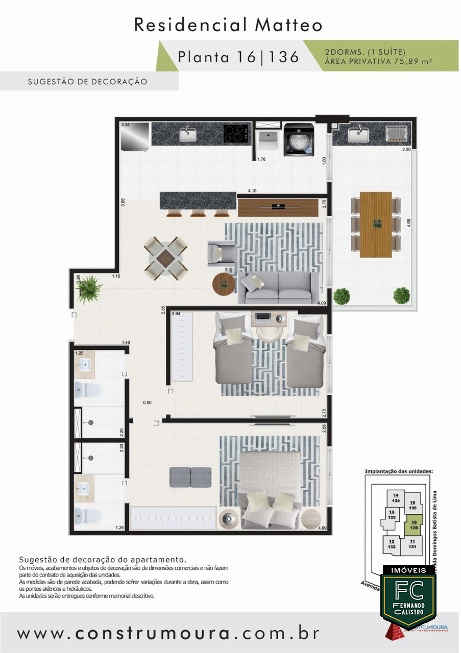 ✅ 75,89m² de área útil