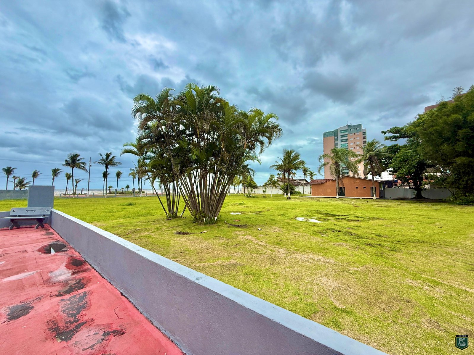 Ampla área comum ao ar livre, com vista permanente para o mar
