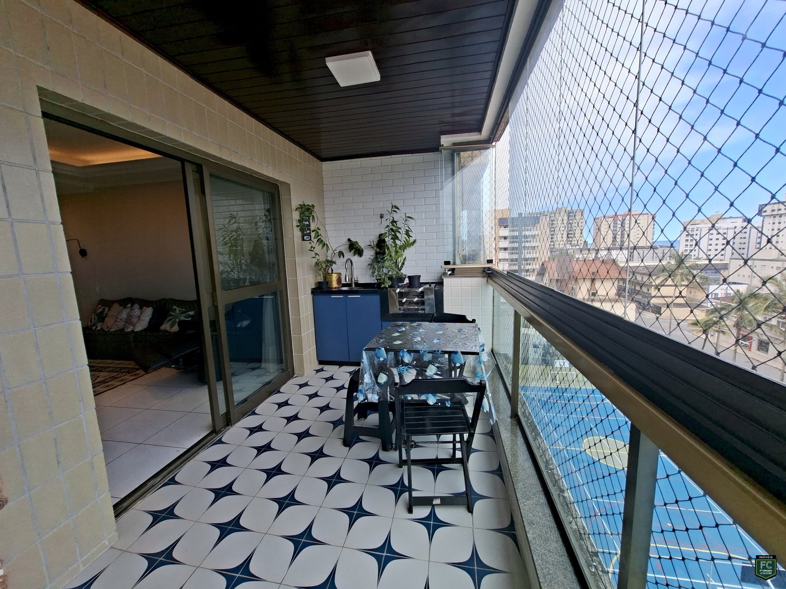 ✅ Varanda gourmet envidraçada com vista frontal para o mar
